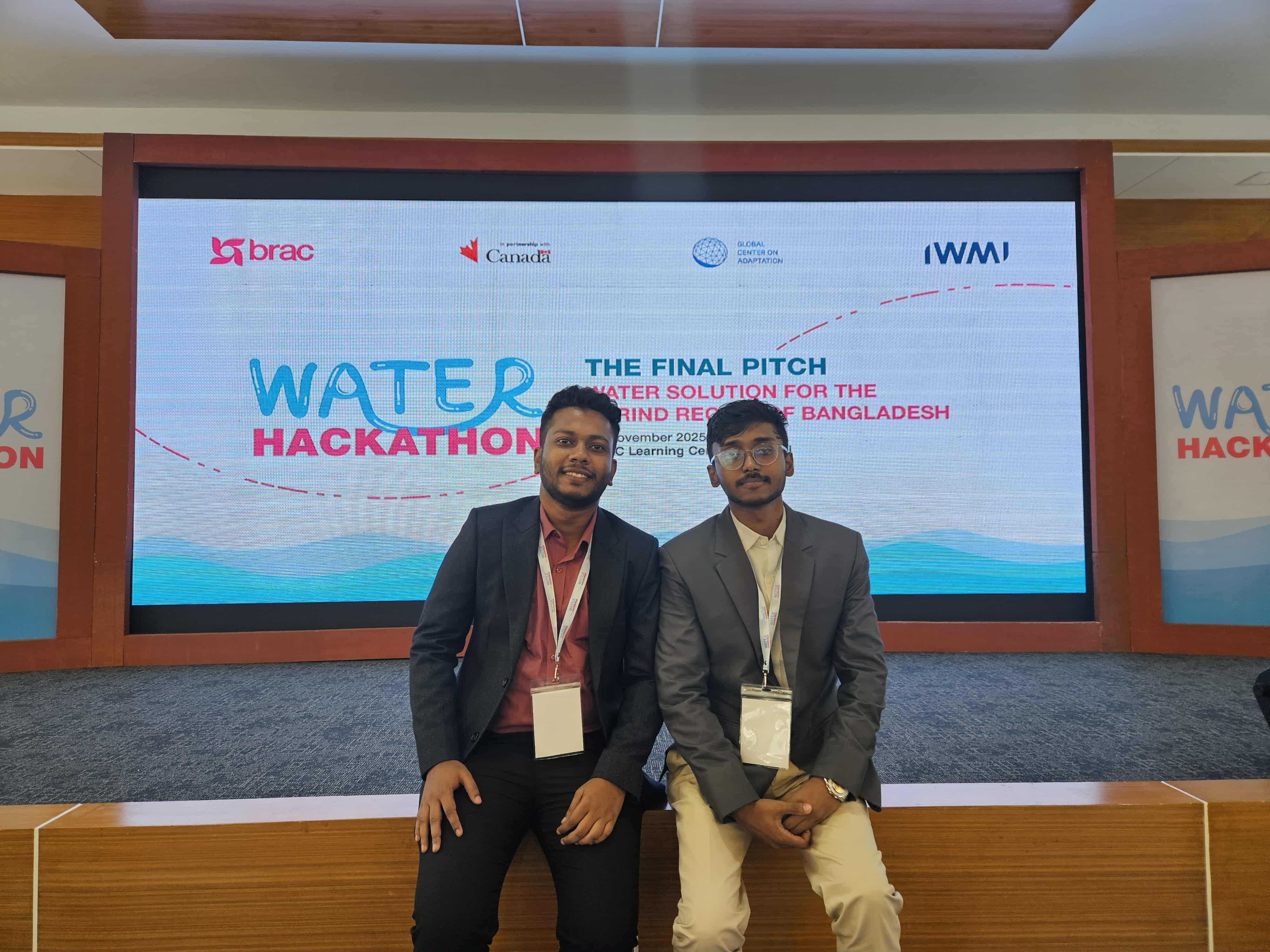 Team 3 Zero, comprising Md. Sadik Jamal Kowshik and Md. Tanvir Alam, achieved 6th place at the Water Hackathon 2025 organised by BRAC, focused on the Barind water crisis. Among 350 submitted projects, only the top 10 teams were selected as finalists to pitch at the BRAC Learning Centre, Rajshahi. Their project titled- “Barind HydroLink – A Circular Water Regeneration Network for a Drought-Resilient Barind,” earned a strong recognition. The champion and first runners-up positions went to two teams from BUET, while third place went to Bangladesh Agricultural University. The Participants included professors, master’s students, and undergraduates from universities from SUST, AIUB, IUB, RU, and RUET.