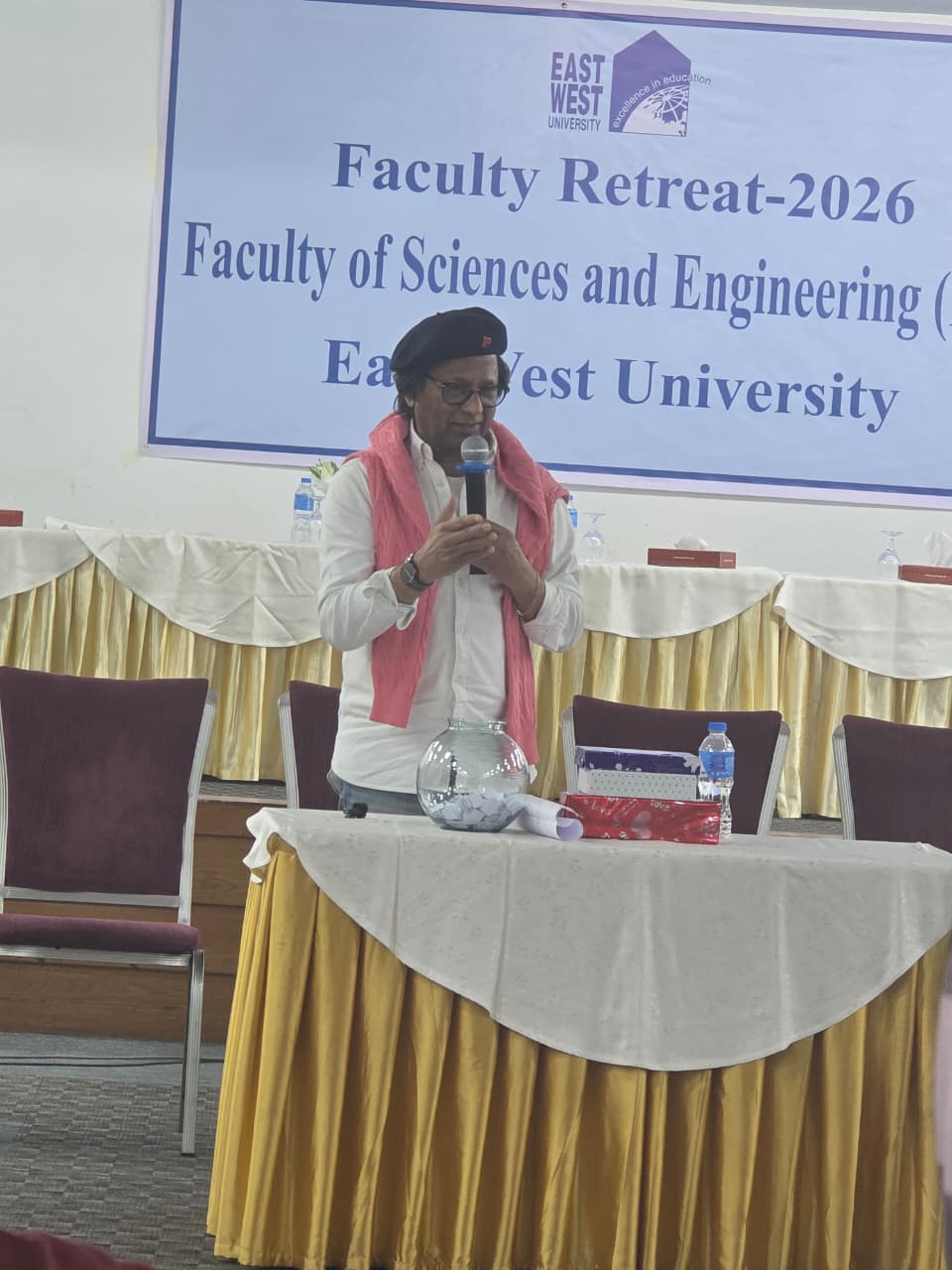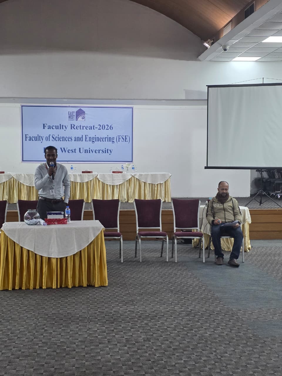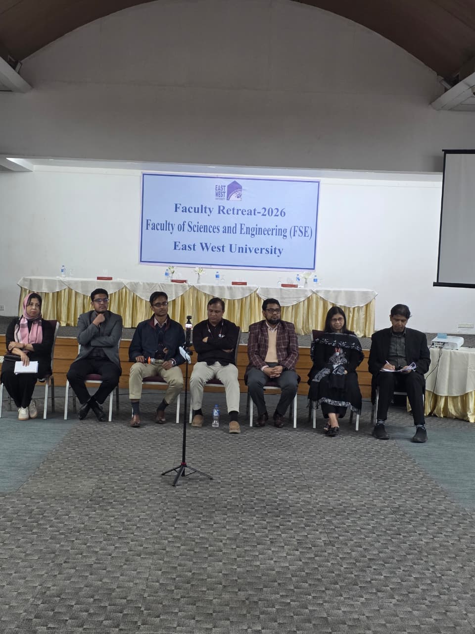 The Faculty of Sciences and Engineering (FSE) of East West University organized its Faculty Retreat Program on 17 January 2026 at BRAC CDM, Savar, to foster collaboration, assess departmental performance, and outline future strategies. The event commenced with a group photo and networking breakfast, followed by welcoming remarks from the Dean, Treasurer, Pro Vice-Chancellor, and Vice Chancellor, who inaugurated the retreat emphasizing academic reflection and institutional growth.