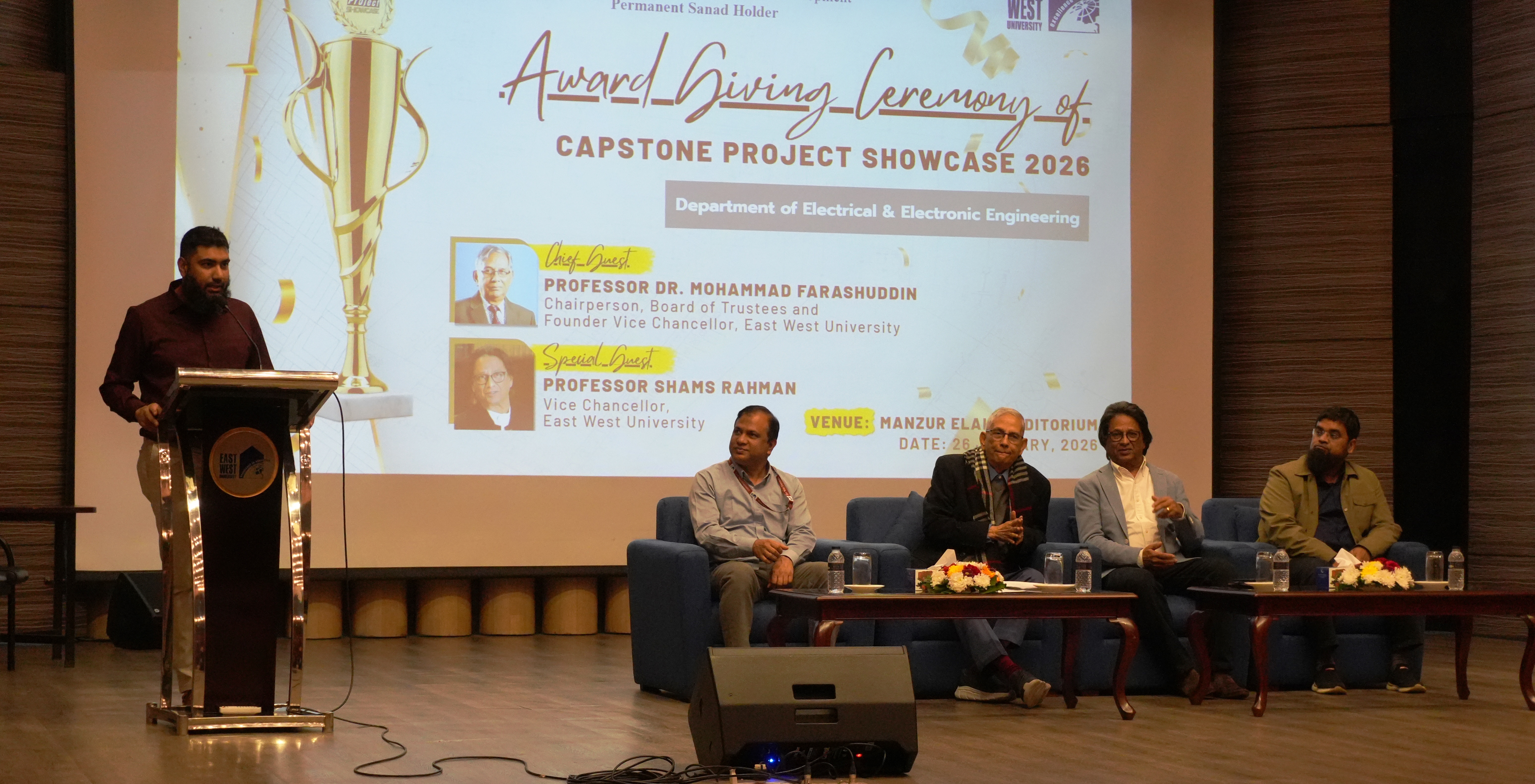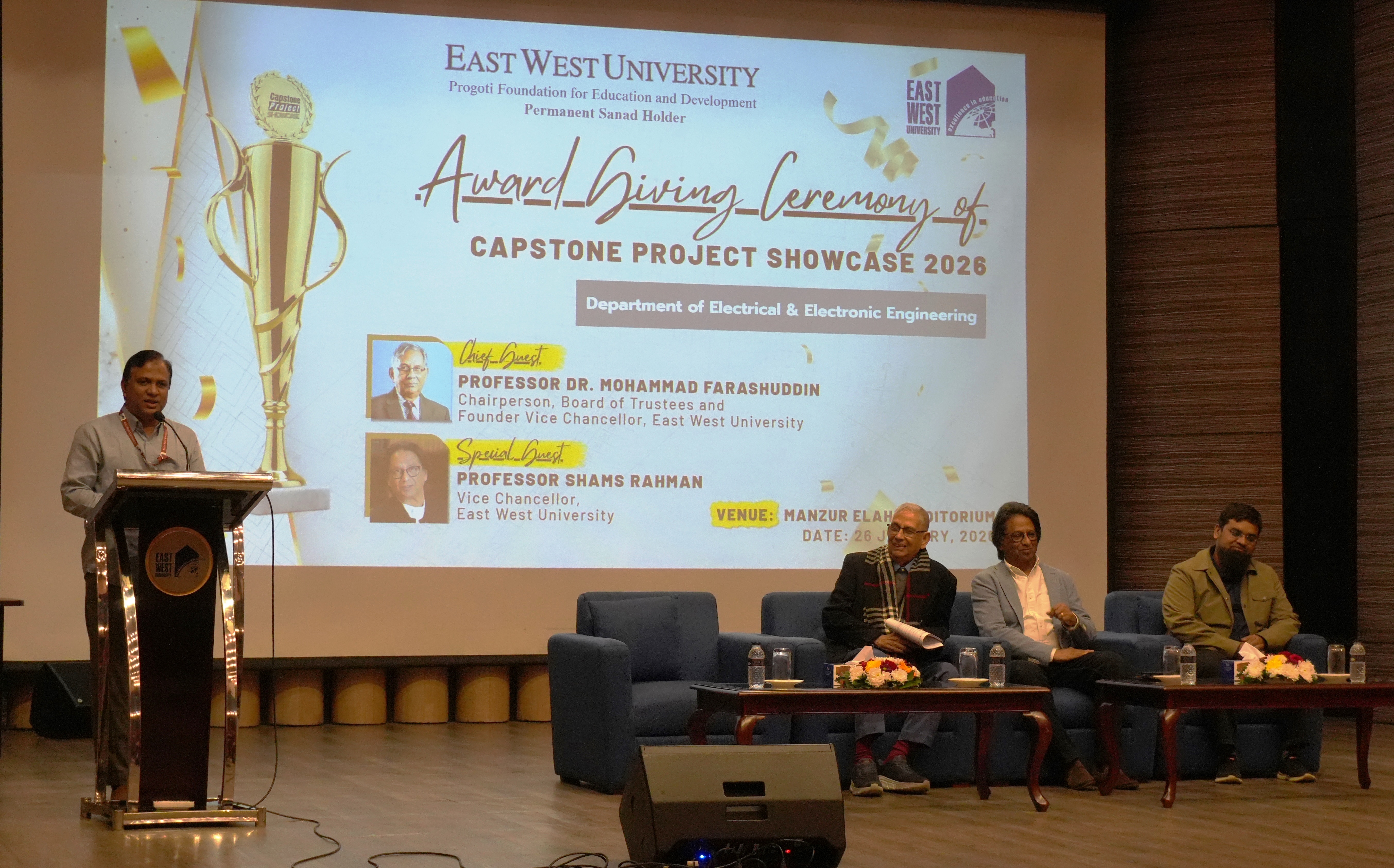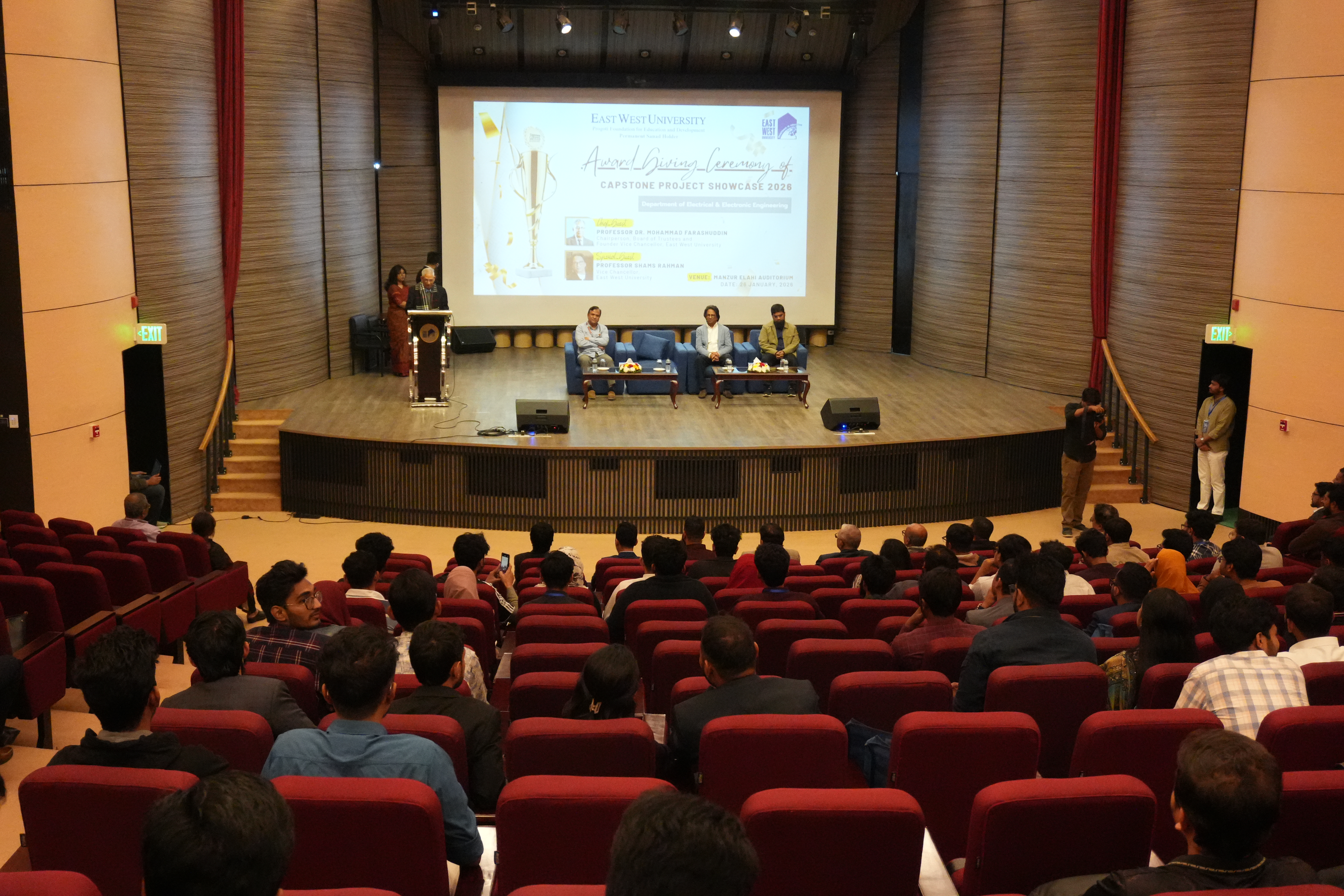 The Department of Electrical and Electronic Engineering (EEE) at East West University (EWU) organized the prize-giving ceremony for the Capstone Project Show on 26 January 2026 at the Manzur Elahi Auditorium. The event showcased the technical ingenuity of final-year students, highlighting their readiness to tackle real-world engineering challenges.