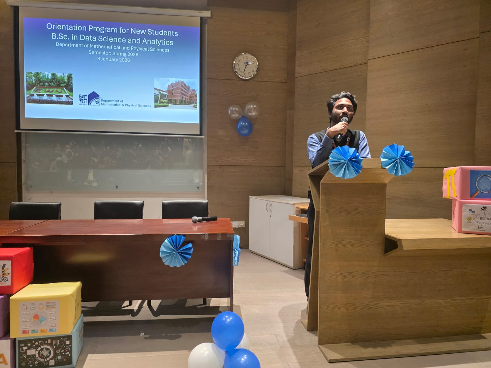 The Department of Mathematical and Physical Sciences at East West University (EWU) welcomed the incoming class of the Bachelor of Science in Data Science and Analytics program for the Spring 2026 semester with a dedicated orientation session held on January 8, 2026.
