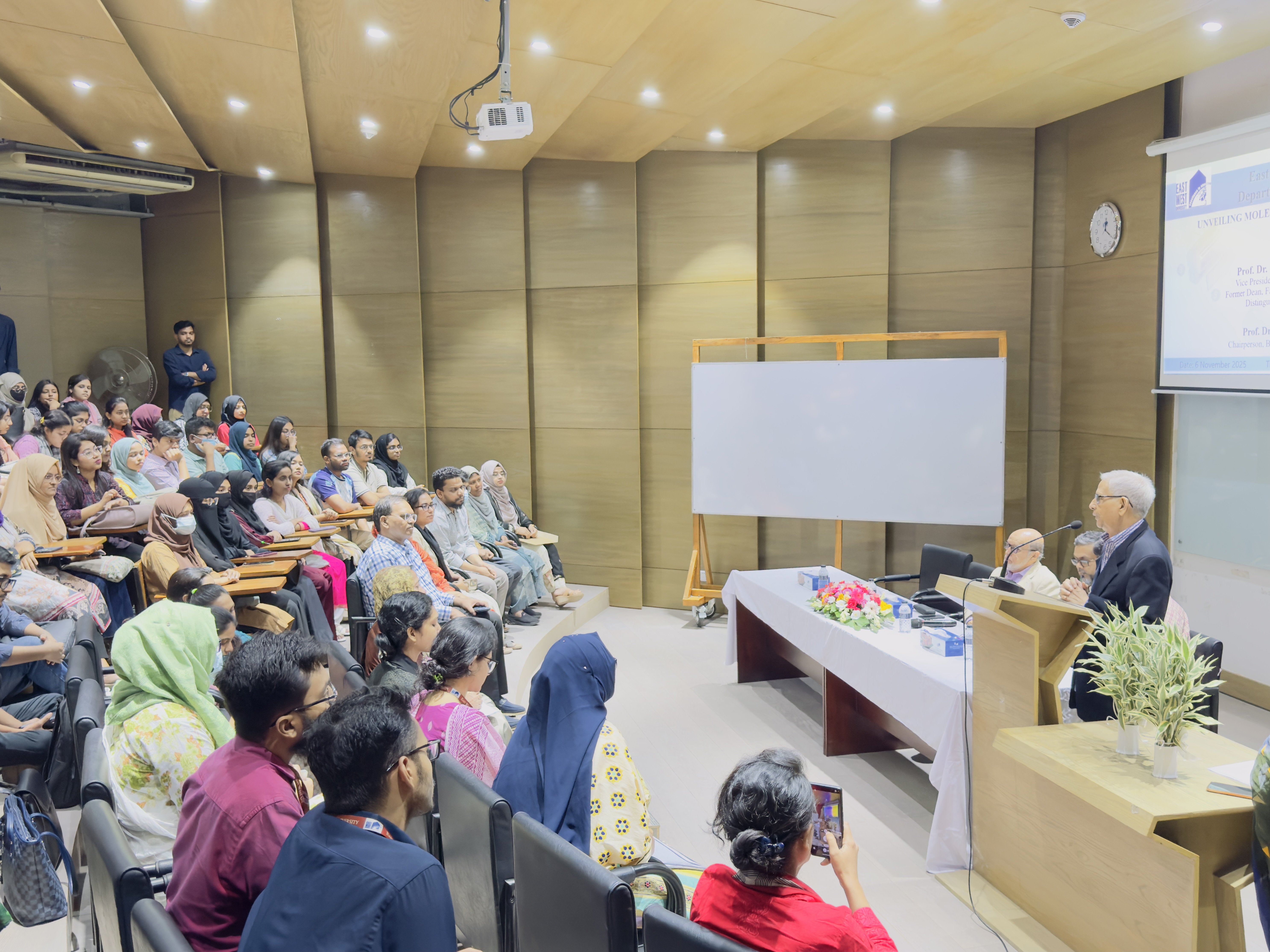 The program concluded with a heartfelt vote of thanks delivered by the Pro-Vice Chancellor, Professor Dr. Mohammad Ashik Mosaddik, expressing gratitude to the distinguished speaker and guests. The session was smoothly conducted by Ms. Rashmia Nargis Reyda, Lecturer, Department of Pharmacy.
