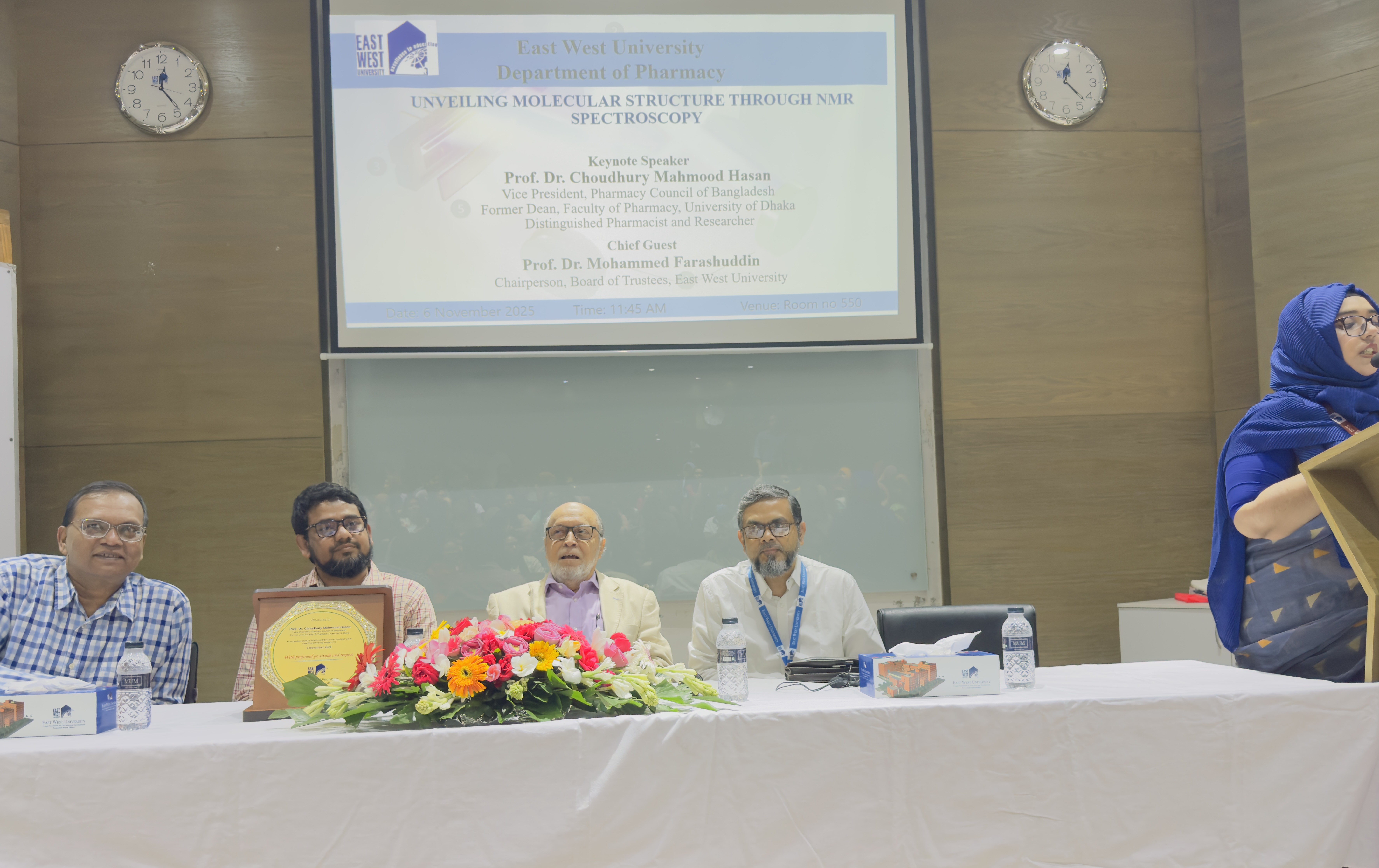 The Department of Pharmacy, East West University, organized an insightful seminar titled “Unveiling Molecular Structure Through NMR Spectroscopy” on 6 November 2025 at the campus.